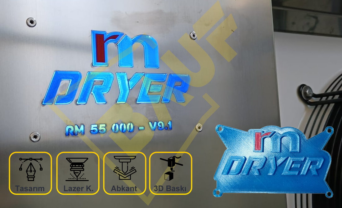 Buradaki tasarımda lazer kesim, şeffaf PLA baskı ve kırmızı PLA baskı kombinasyonundan oluşmaktadır. Basılan 3d parça kesilen paslanmazın içine geçer ve arkadan led ışık ile güçlü bir görsel elde edilir