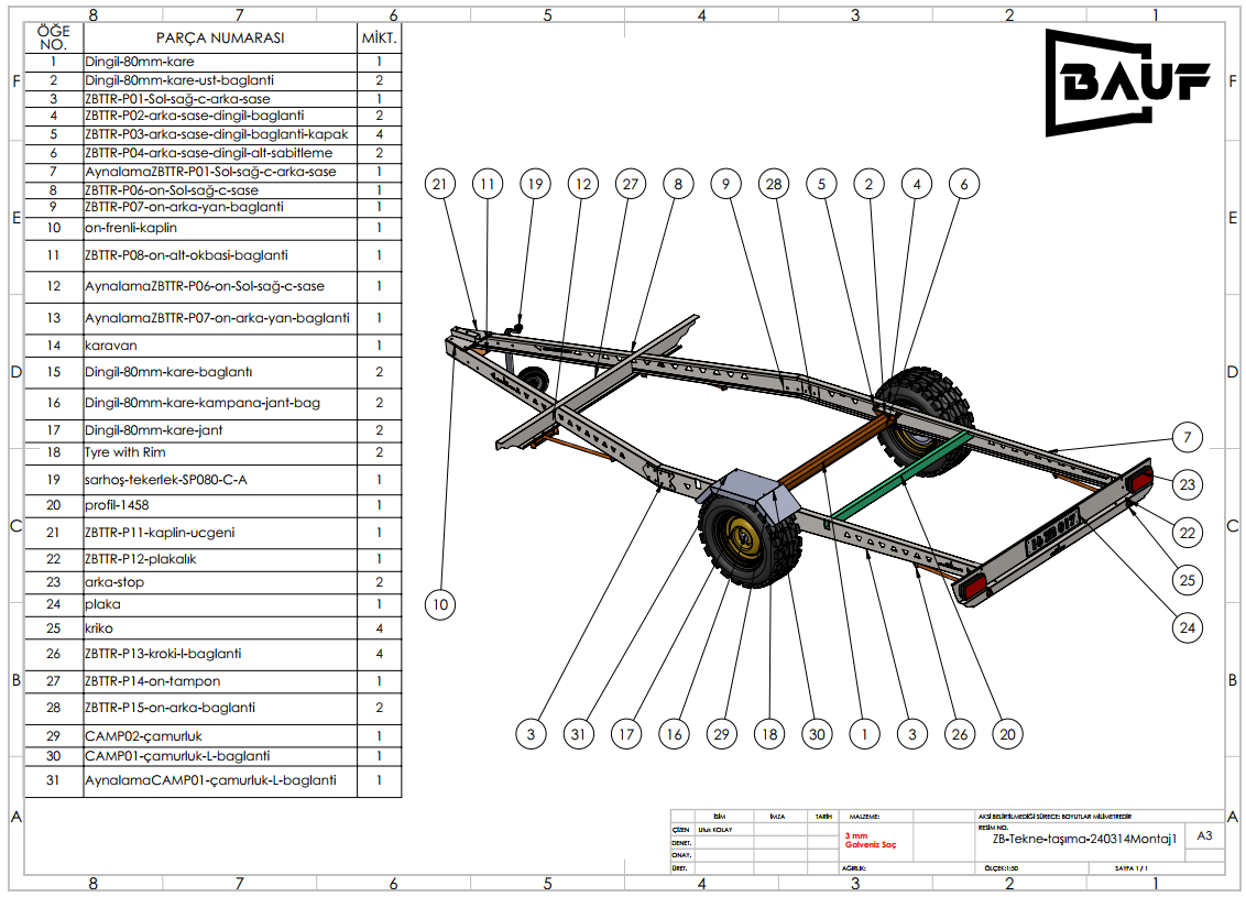 Bu noktada özellikle çok parçalı çizimlerde BAUF olarak karma çözümler (Saç metal tasarım, modelleme, 3d baskı ile plastik parça oluşturma) sunmaktayız. 1000 parçanın üzerindeki makina çizimlere imza atmış kadromuzla en ufak parça çiziminden karmaşık makine çizimlerine kadar yanızda oluyoruz.